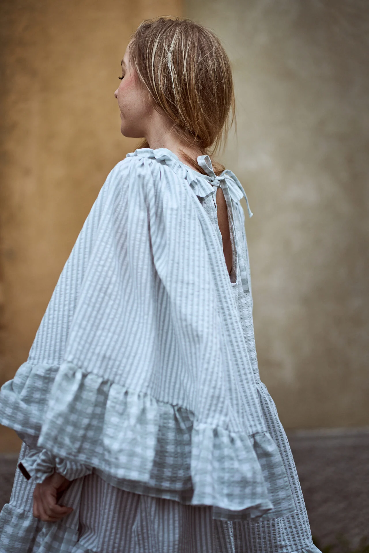 En klänning tillverkad av ett påslakan i bäckebölja. Passar dig som har upp till storlek XL/XXL.
